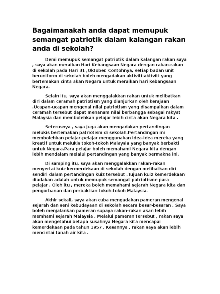 Bagaimanakah Anda Dapat Memupuk Semangat Patriotik Dalam Kalangan Rakan Anda Di Sekolah Pdf